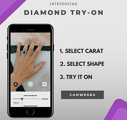 It helps customers to try diamonds in different carat sizes & shapes on a live video of mobile or laptop camera. Camweara is the first tool to offer real time experience on websites.