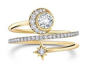 In keeping with the interstellar theme, the extension of the collection will play with three key motifs: thesun, moon and stars, as seen in earrings, rings, bracelets, pendants and brooches. A central Forevermark diamond emerges as the definitive, cosmic element in each design. The extension intricately mixes yellow and white gold to create a classic style statement.