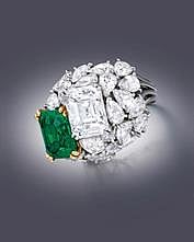 One of the top lots from the sale is an important sapphire ring (pictured above, left, estimate: $1,275,000-1,775,000), a 15.23 carat cushion-shaped sapphire of Kashmir origin with no indications of heat enhancement. This is a rare and an exceptional example from the now depleted Kashmir mines. Additional highlights include an impressive fancy deep yellow brown diamond pendant, weighing 24.23 carats (estimate $200,000-300,000); a fine oval-shaped brilliant-cut diamond, weighing 10.05 carats (estimate: $200,000-250,000); and a fine emerald and diamond ring of bombé design (estimate: $60,000-100,000).
