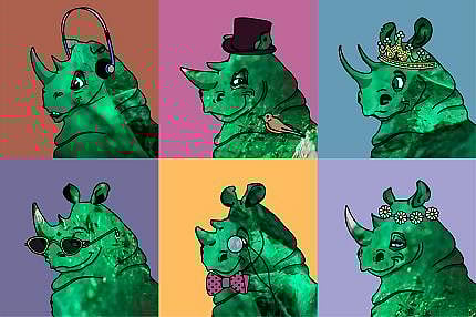 The Gemfields NFT series, called “the Chipembele Crash”, comprises six unique rhinoceros avatars (a “crash” being the collective term for a group of rhinos).Each avatar featuresthe characteristic emerald inclusions photographed inside Chipembele; andeach one has been inspired by a real-life rhino at the North Luangwa Conservation Programme (NLCP) in Zambia,evencarrying the individual ear-notch of the animal, as well as accessories that give a glimpse into its distinctive personality. An exclusive photo of each rhino is provided as unlockable content to the NFT.
