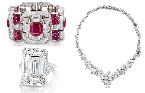 Held on Friday September 21, among the top performing lots were two impressive diamond fringe necklaces weighing a total of 152.50-carats along with a 23.13-emerald-cut diamond ring - all signed by Harry Winston. These belonged to the Olympic gold medalist Katherine Domyan. The first of her diamond necklaces, with a total diamond weight of 86.30-carats, sold for $ 492,500. The second, with a total diamond weight of 66.20-carats, sold for $ 324,500.