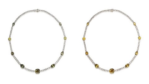 The most important set of Chameleon diamonds ever to be presented at auction leads the forthcoming Rare Jewels and Jadeite sale at Bonhams Hong Kong on 25 November. The exquisite diamond necklace features nine Chameleon diamonds weighing 13.87-carats total and is expected to fetch between HK$1,600,000 and HK$3,000,000.