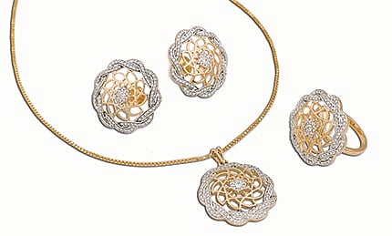 Set in 18K gold and pure platinum jewellery, the diamonds in this collection come alive through the lustrous and carefully thought out patterns. To add to its intricacy, the designs are carefully fused together with ORRA 'Micropave' technique, where a large diamond is set in the centre and smaller, brilliantly cut diamonds are set closely around it. Stunning just like you, and perfect for everyday wear, the use of fine Gold arc in a moving pattern around the Aquila setting core, add volume to the design.