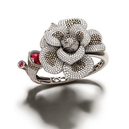 The true testament of Zoya’s mastery can be found in the standout designs crafted at the atelier over the past years. Seeking cues from everlasting monuments and evoking memories of distant lands, as much as the spirit of the Zoya woman, statement-making creations like La Duna Rosa, celebrate the exotic flamboyance of the Spanish flamenco dancers while finding resonance in the bold passion of the woman who adorns this iconic masterpiece. The splendor of Zoya’s Florence Baptistry earrings and the Peonies ring inspired by the spring blooms in Paris, have found a patron in the well-travelled women of today, and appeal to her ardor for adventure and eye for the beauty in detail and nuance. The intricate lattice structure of the Eiffel Tower bangle, another revered piece from the atelier, is as much an ode to Zoya’s ingenious interpretation of inspiration through design, as it is to call to the everlasting romance that blooms eloquently in the heart of the Zoya woman. The myriad marvels of nature play muse for the label’s iconic designs as well. The magnificent Green Apple necklace harkens to the transformation in the vistas of Kashmiri valleys as the seasons change resplendent with diamonds and cabochon emeralds while its Crescent Rose earrings are asensual homage to the flora and foliage of the baroque era. Zoya’s legacy of design also reflects the social conscience of the Tatas. Over the past decade, Zoya has championed a wide roster of Indian crafts, ranging from patronage to the dying art of gulabi meenakari in the Lotus Haslinecklace to the exemplary use of partaj work in the Krsnabangle.