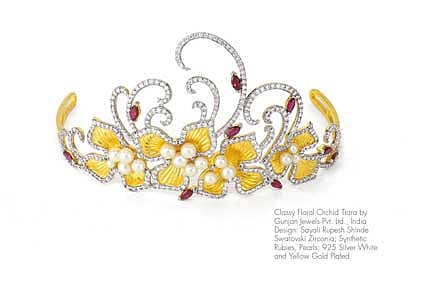 The Designers and Their Inspirations Swarovski had the pleasure of requesting well-known designers and valued customers to present their own design ideas for the Gem Visions Tiara & Headband Special, which was officially published at Baselworld 2015. The response was overwhelming, and an astonishing fifty or so highly creative and inspirational submissions have been included in the published book, each with its own special story to impart. One standout design, crafted by Sabine Roemer, the German-born, London-based designer, is a very light, contemporary tiara that sits elegantly yet snugly over the crown of the head, its white, pear-shaped and princess-cut Swarovski Genuine Topaz stones set in 925 silver. The major theme of the design is the reed, which symbolizes the lifetime commitment to the chosen partner and the immense love that is the basis of that decision.