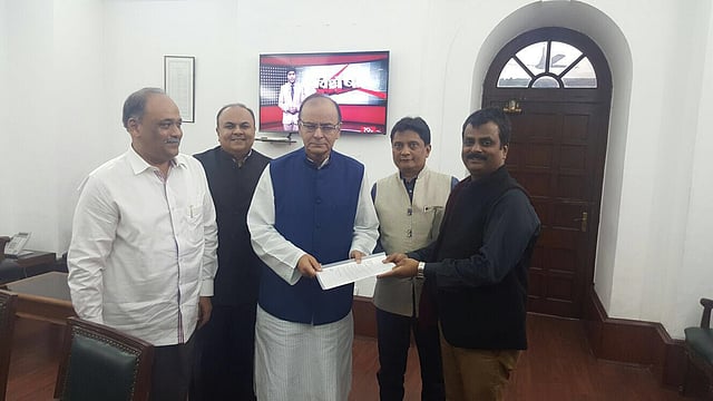 A delegation led by All India Gems and Jewellery Trade Federation (GJF) team met hon’ble FM Arun Jaitley, today. The delegation has submitted its presentation to the FM.