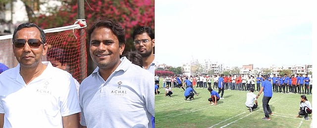 (l) Arun Kothari, Founder & Chairman of Achal Jewels and Vikas Mehta, CEO (r) Employees enjoying a game of Kho-Kho