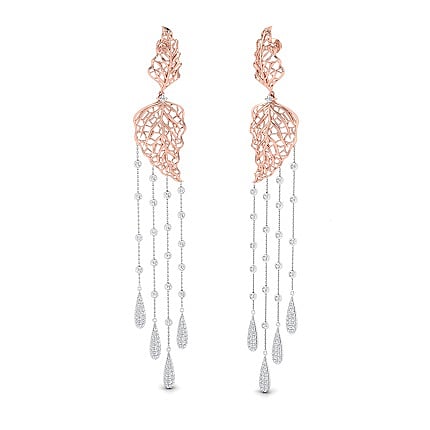 This whole new range of meticulously crafted earrings is inspired from the magnificent beauty of nature and foliage. Embellished with diamonds certified by SGL and casted in 18 gold, these danglers is sure to add a certain edge to your personality. This collection of earrings can be carved in white, rose or yellow gold.