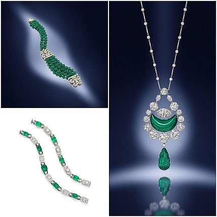 Emily Barber, Director of Bonhams Jewellery, UK, says: “These jewels are simply magnificent. Superb emerald specimens like this do not come to market very often so we’re delighted to bring them to auction for the first time. The crescent-shaped emerald is no doubt an historic Indian gem, cut to maximize its “green fire” and the sugarloaf cabochon emerald, a cut favoured by early 20th century Art Deco jewellers, is one of the finest examples we have seen.”