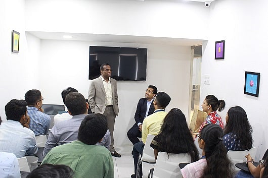 Srinivasan shared valuable insights about his illustrious journey through the jewellery industry. He started out as a salesman at a jewellery store in Coimbatore, at a monthly salary of Rs 100 in 1984. 34 years later, K. Srinivasan is the Managing Director of Emerald Jewel Industry India — Coimbatore’s largest jeweller, and a reputed name in South India. From jewellery retailers to aspiring designers, he guided each one of the students about building a lucrative career in the gems and jewellery industry.