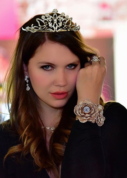 The Mudan diamond watch was awarded the Guinness World Record at Baselworld for Most Diamonds Set on a Watch. The watch is set meticulously with 15,858 diamonds totaling 50.01 carats of white and champagne diamonds and is valued at $500,000. The watch contains a masterpiece on dial – a painting of a diamond by jewelry designer and painter Reena Ahluwalia. The Mudan watch is inspired by the peony, known as the king of flowers in Asian culture. “Mudan” is Chinese for peony, as it symbolizes nobility, honor and wealth.
