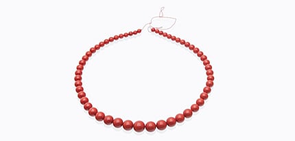 An exceptional precious coral necklace with 55 beads of up to 20 millimetres in diameter, from the Mediterranean Corallium rubrum species. DNA fingerprinting technology can provide scientific species documentation for such outstanding coral items found in jewellery. Photo: SSEF