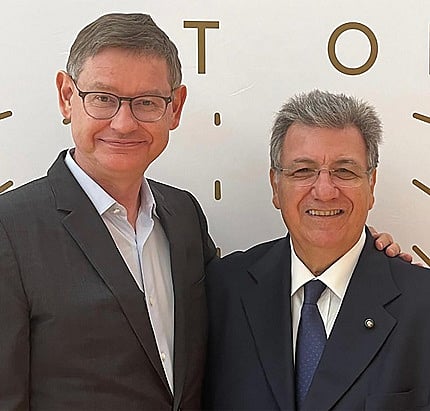 Cyrille Vigneron (left), President & CEO of Cartier International, together with CIBJO President Gaetano Cavalieri in Vicenza, Italy, on September 9, 2022.