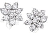A pair of diamond earrings (est. $150,000-180,000), as the cover lot, with each piece centering a claw set oval diamond bordered by round brilliant cut diamonds and surrounded by a cluster of similarly set marquise and pear shaped diamonds, the sixteen diamonds together weigh 16.27 carats. The supporting diamonds weighing approximately 3.50 carats, mounted in platinum and 18ct white gold.
