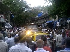 The usual peak evening hustle bustle in Mumbai's Zaveri Bazaar, the hub for gems and jewellery trade and Panchratna building in Opera House, the business hub of diamond metchants was shaken with bomb balsts, today at around 6:55 pm. The city has endured three bomb blasts this evening, another being in Dadar area. The blasts, that went off within minutes of each other, injured 15 so far. The blast in opera house happened outside Panchratna Building in a Maruti car. Police and fire brigade rushed to the spot.