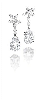 The highlight of this sale is a pair of pear-shaped diamond earrings by Harry Winston (16.21 and 15.67 carats, D/VVS2, potentially flawless), estimated at US$3,200,000-3,900,000.