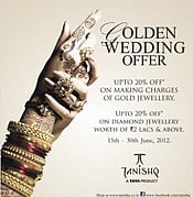 The Tanishq ‘Golden Wedding Offer’ is valid from June 15 to June 30 2012 across Tanishq stores in select cities in India.