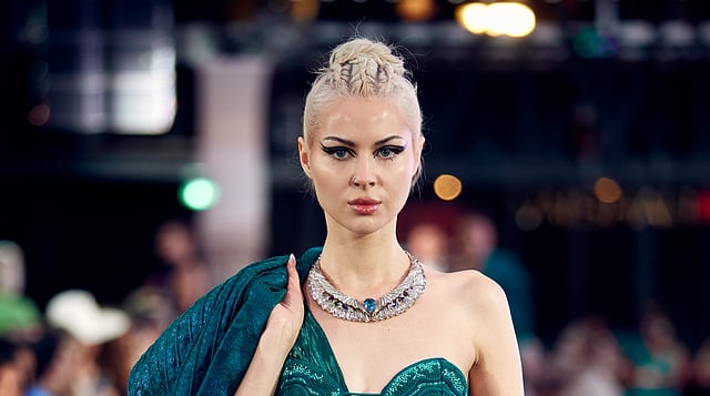 This year, Tanishq collaborated with designer Vaishali Shadangule, the first Indian woman to debut at Paris Haute Couture Week in 2021. Tanishq’s ethos perfectly matches Vaishali 's vision, as she embodies the Tanishq woman—progressive, contemporary, and dedicated to promoting Indian craftsmanship and artistry on the world stage.